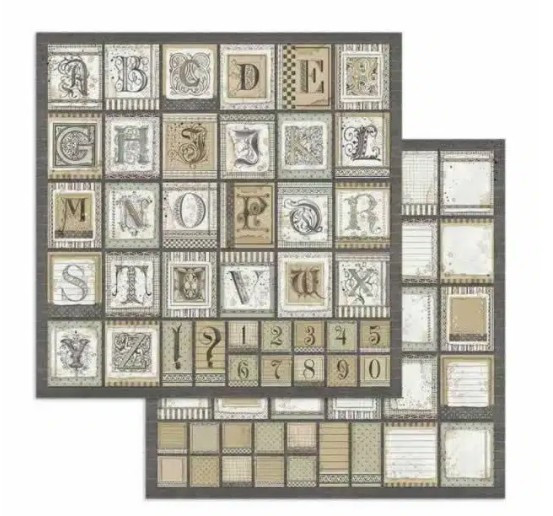 Ez a kiváló minőségű scrapbook lap elegáns és nosztalgikus hangulatot kölcsönöz kreatív projektjeidnek. A dizájn az ábécé betűit és számokat ábrázolja klasszikus, ornamentális stílusban, finom részletekkel és semleges, enyhén patinás árnyalatú vintage díszítésekkel. A hátoldalon harmonizáló minták találhatók, amelyek kivághatók vagy háttérként is használhatók, maximális sokoldalúságot biztosítva munkáidban.