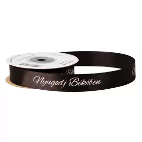 20 mm-es szatén szalag – fekete, „Nyugodjék békében” felirattal