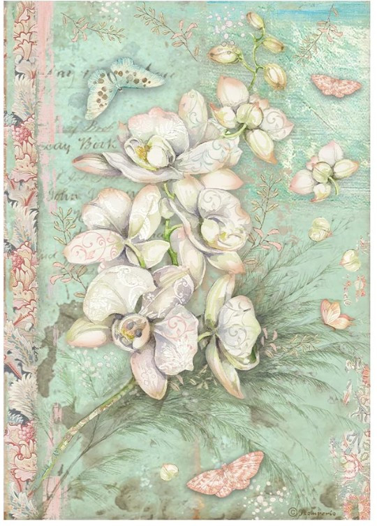 A4 Dekoratív rizspapír dekupázshoz – Romantikus orchidea minta