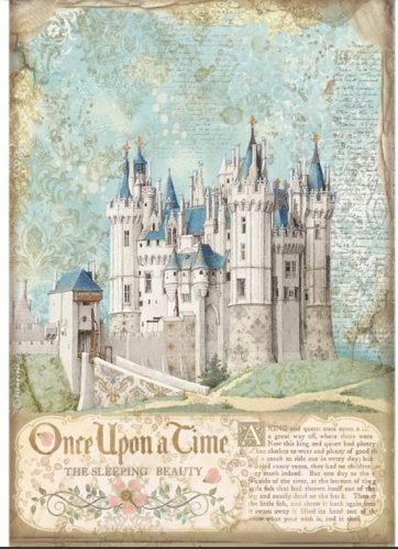 A4 dekupázs rizspapír - Mesebeli kastély, vintage stílusú „Egyszer volt, hol nem volt”