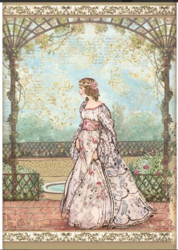 A4 dekupázs rizspapír - Vintage hercegnő romantikus kertben