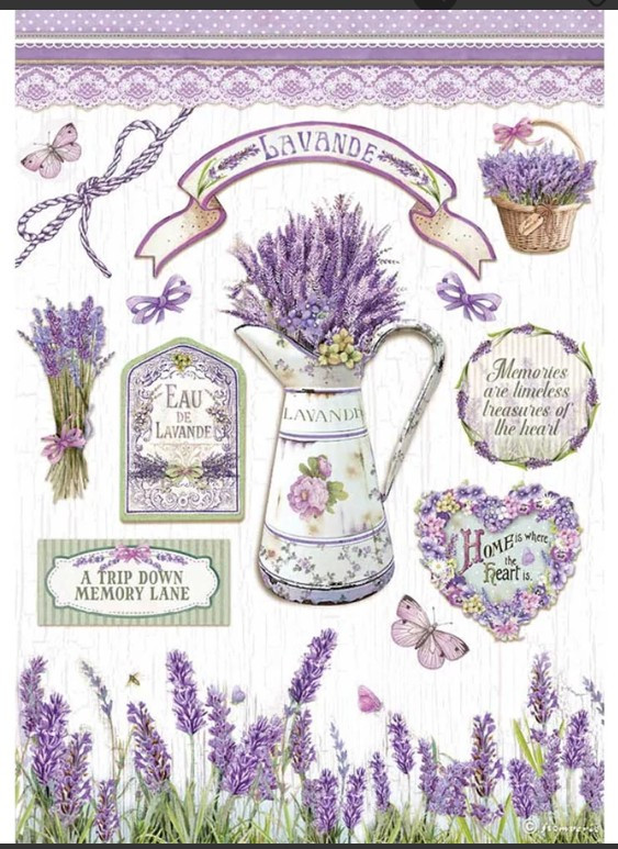 A4 dekupázs rizspapír - vintage levendula, provence-i stílus