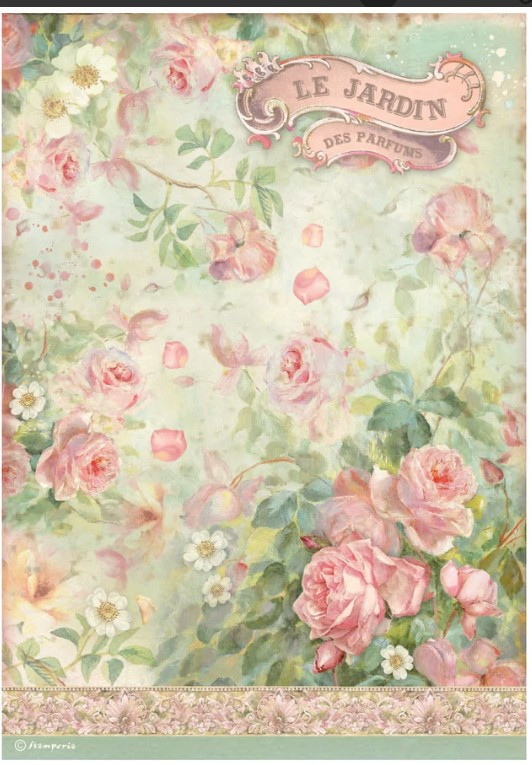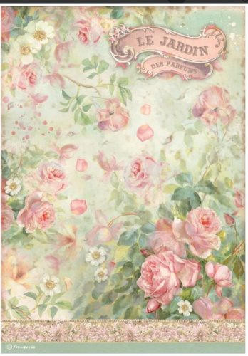 Alakítson át bármilyen hétköznapi tárgyat mesés dekorációs darabká, és adjon egy csipetnyi kifinomult eleganciát kreatív projektjeihez ezzel a rózsákkal díszített "Le Jardin des Parfums" dekoratív rizspapírral.