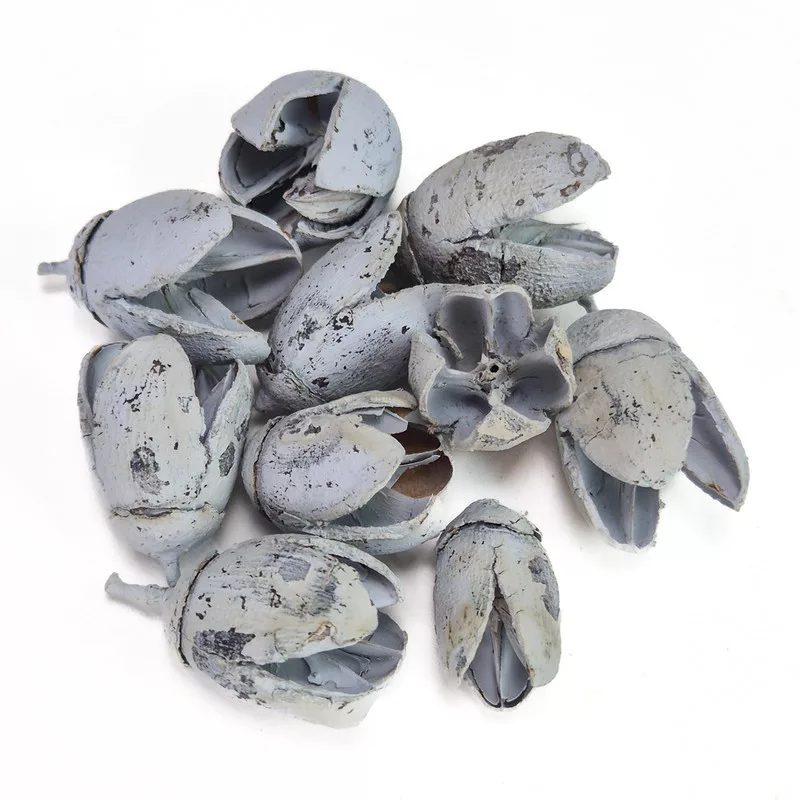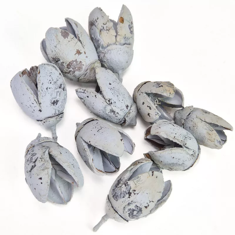 10db világoskék bakuli termés: a rá jellemző nyílt tobozszerű termés segítségével több tavaszi koszorút vagy egyéb készítményt feldobhatunk.