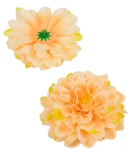 A 10 cm-es őszibarack színű szatén dália meleg, világos és barátságos hangulatot kölcsönöz bármilyen dekorációnak, kézzel készített és barkács projektnek. Természetes árnyalata ideális tavaszi virágdíszekhez, lakberendezéshez és természet ihlette kompozíciókhoz.