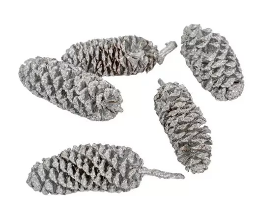 Az ezüst szín tökéletes téli dekorációhoz, modern kirakatokhoz, ünnepi kompozíciókhoz, minimalista dekorációhoz vagy skandináv hangulatú kompozíciókhoz. Hűvös és élénk tónusa kiemeli a toboz természetes textúráját, elegáns kontrasztot teremtve a rusztikus és a kifinomult között.
