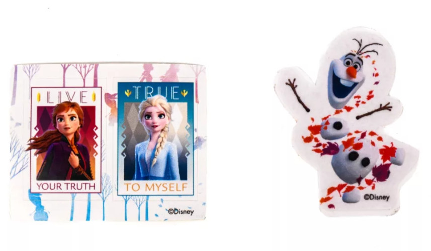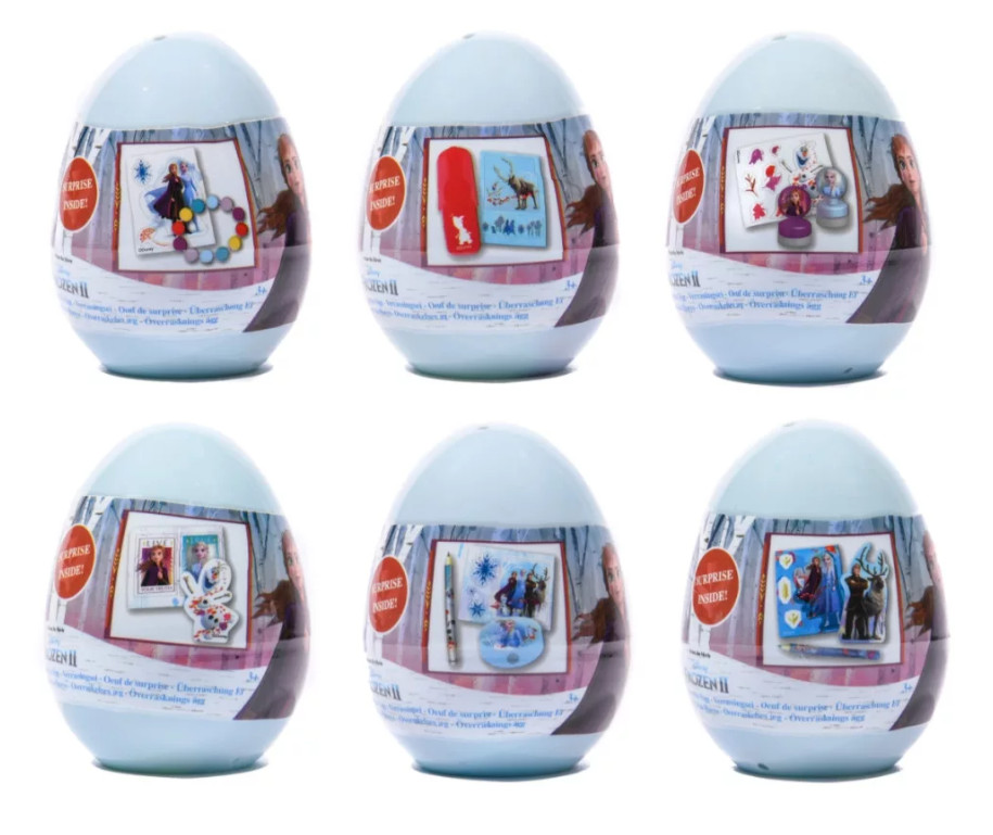 Jégvarázs 2 kicsi tojás apró meglepetés ajándékokkal! A tojás alakú tartóban matricákat, hegyezőt, nyakláncot, ceruzát, nyomdát találsz, természetesen mind a kedvenc Jégvarázs 2 karaktereiddel díszítve. Hogy melyik készlet érkezik hozzád a kicsi tojásban, az persze meglepetés!