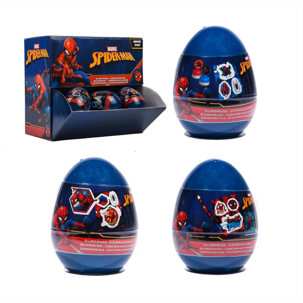 Pókember kicsi tojás apró meglepetés ajándékokkal! A tojás alakú tartóban matricákat, hegyezőt, radírt, ceruzát, nyomdát, matricákat találsz, természetesen mind a kedvenc szuperhősöddel díszítve. Hogy melyik készlet érkezik hozzád a kicsi tojásban, az persze meglepetés!