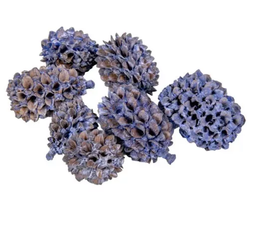 Az acélkék árnyalatú "casuarina" tobozok modern, enyhén ipari és nagyon elegáns megjelenést kölcsönöznek. A hűvös, fémes szín érdekes kontrasztot alkot a toboz természetes textúrájával, így egyéniségű díszítőelemet eredményez.