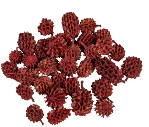 "Casuarina" szárított dísztobozok, piros – 0,7x2 cm 20 db/készlet
