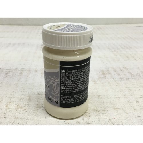 Dekupázs ragasztólakk- matt. Vízbázisú, gél állagú ragasztó és lakk egyben. Különösen előnyös szalvéták ragasztásához. Fagytól óvjuk!
