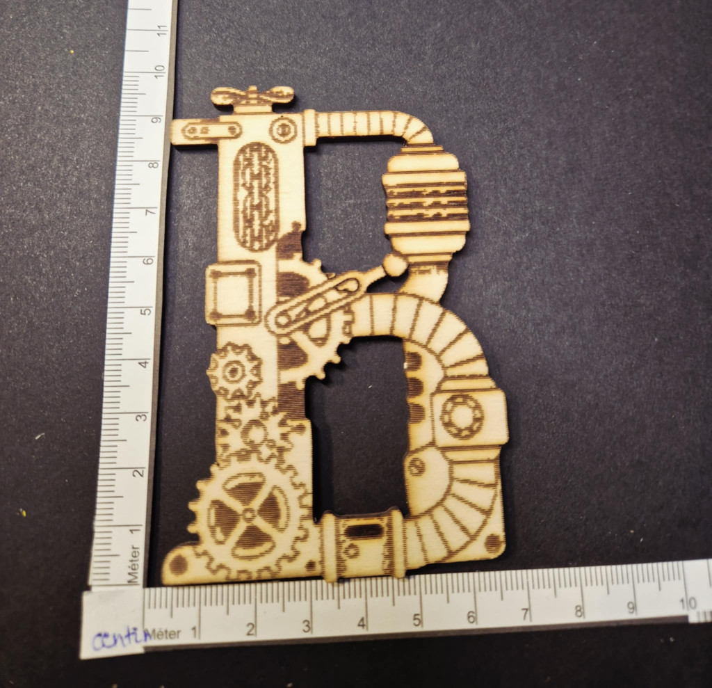 Dekoratív fa steampunk „B” betű – 8,5 × 10 cm