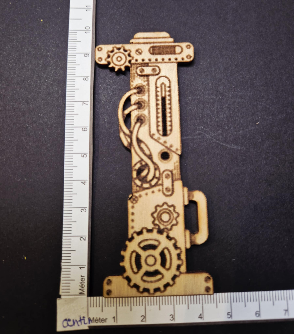 Ez a dekoratív fa betű autentikus steampunk stílusával tűnik ki. A mechanikus kialakítás erőteljes és kifejező megjelenést kölcsönöz. A természetes fa melegséget és esztétikai egyensúlyt kölcsönöz. Tökéletesen illeszkedik az ipari vagy vintage dekorációhoz. Ideális dekorációs darab barkács projektekhez.