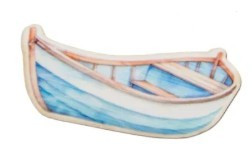 Dekoratív figura, amely egy kis hajót ábrázol kék árnyalatokban, merev kartonból, minőségi UV nyomtatással. Az egyszerű és kellemes dizájn a tenger nyugalmát és a nyugodt nyaraló hangulatot sugallja.