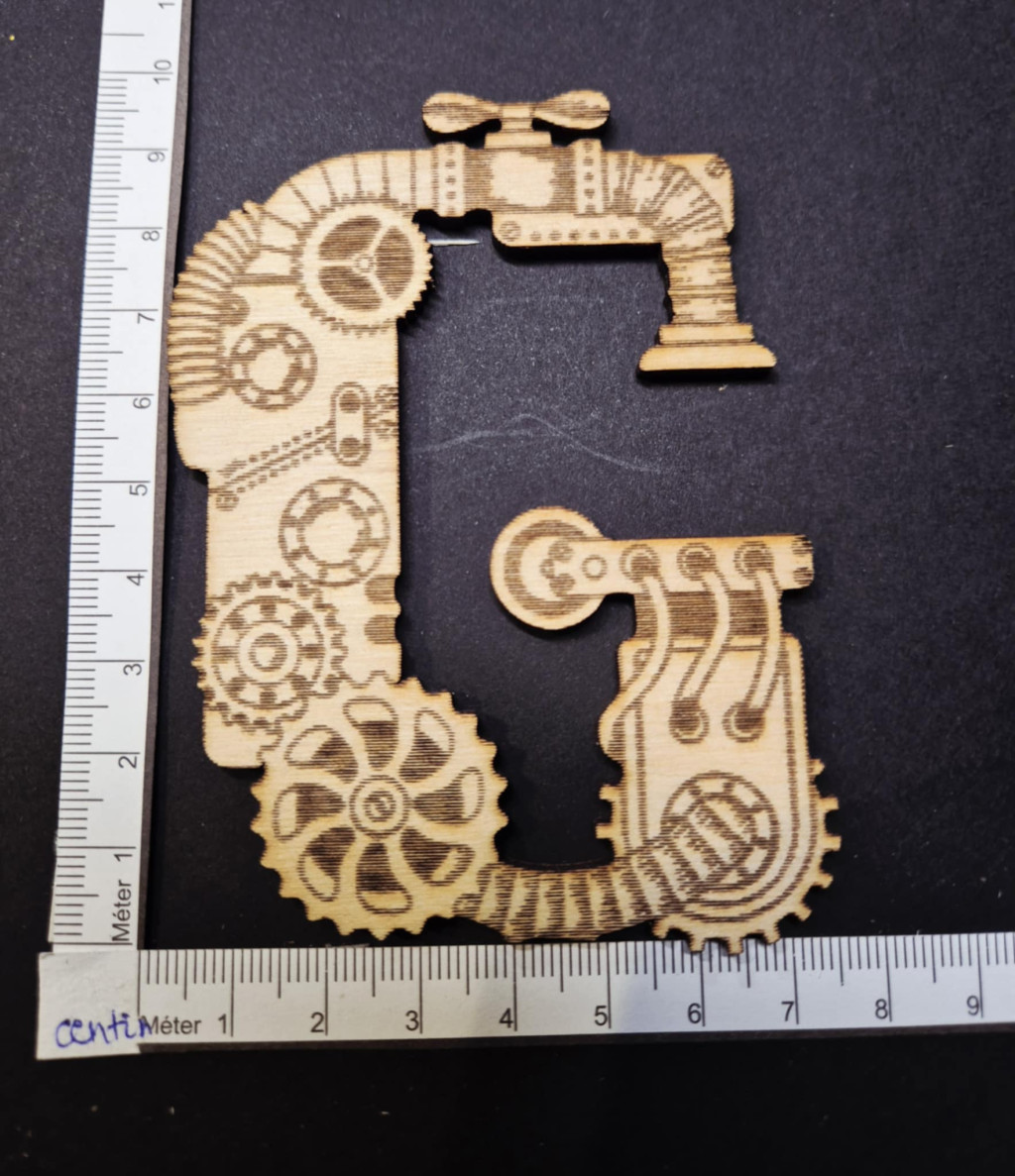 Ez a steampunk fa betű ipari és művészi hangulatot kölcsönöz bármilyen környezetnek. A finom gravírozás kiemeli a kerekeket, csöveket és technikai elemeket. A fa kellemes kontrasztot alkot a mechanikus stílussal. Modern dekorációhoz, loftokhoz vagy műhelybe is alkalmas. Kézzel készített díszítőelem vizuális hatással.