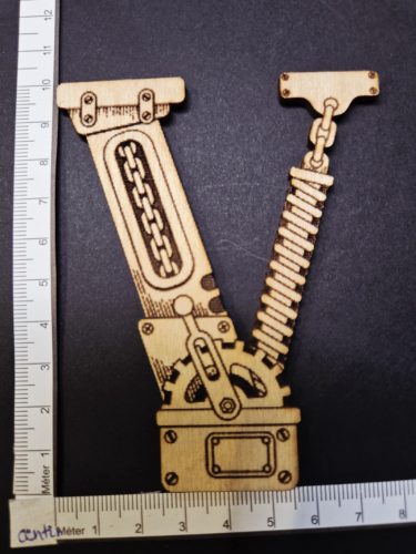 Dekoratív steampunk fa betű "V" – kb. 8,5 × 10 cm