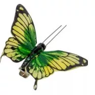 Dekoratív zöld-sárga pillangó csiptetővel – 7 cm, természetes és vidám dekoráció