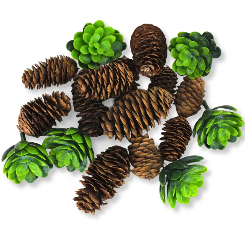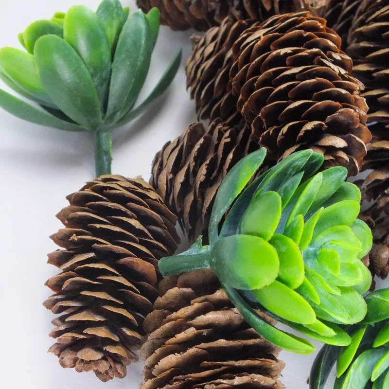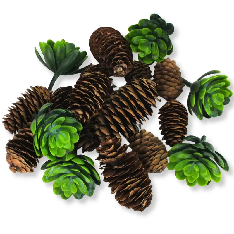 Természetes, üde hangulatú termésválogatás, amely nagyobb méretű tobozokat és zöld pozsgás növényeket tartalmaz. Az erdei elemek és a friss zöld árnyalatok harmonikus összhangja tökéletes alapot ad koszorúk, asztali díszek vagy szezonális dekorációk készítéséhez. Az „Erdei frissesség” terméscsomag minden kompozícióba egy kis természetközeli életet és frissességet visz.