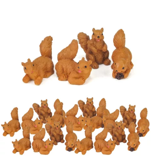 5x4db Kis méretű polirezin mókusok a tavasztól-őszig tartó szezon dekorációihoz.