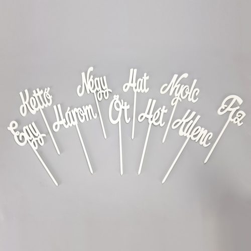 Esküvői beszúrható írott számok 1-10ig fehér 10db/csomag_KIFUTÓ