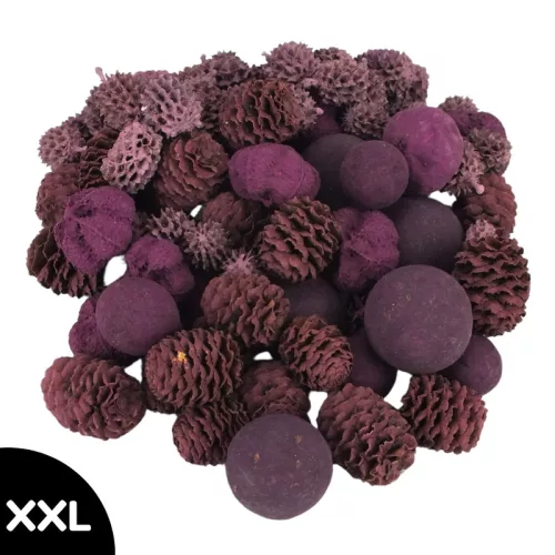 XXL terméscsomag a lila szín árnyalataiban, különböző igényes dekorációk elkészítéséhez és díszítéséhez. A kreatív terméscsomagok tökéletesek helykitöltésre és természetes dekorációkhoz. Ideálisak koszorúk, asztaldíszek és egyéb kreatív projektek készítéséhez.