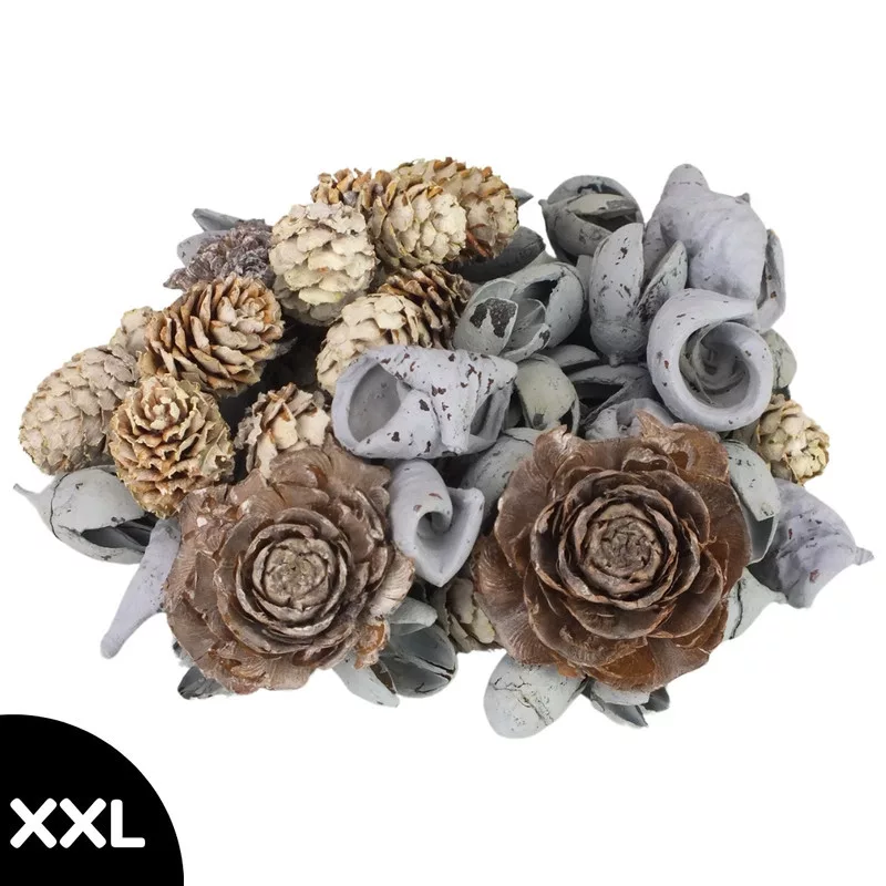 XXL terméscsomag a kék és a természet színeinek árnyalataiban, különböző igényes dekorációk elkészítéséhez és díszítéséhez. A kreatív terméscsomagok tökéletesek helykitöltésre és természetes dekorációkhoz. Ideálisak koszorúk, asztaldíszek és egyéb kreatív projektek készítéséhez.