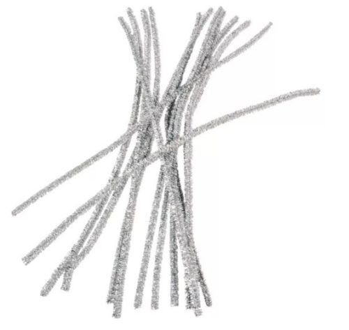 Ezüst zsenília plüss drót készlet, ideális modern dekorációkhoz és csillogó kiegészítőkhöz. A drótok rugalmasak és könnyen használhatók különféle alkotásokban.