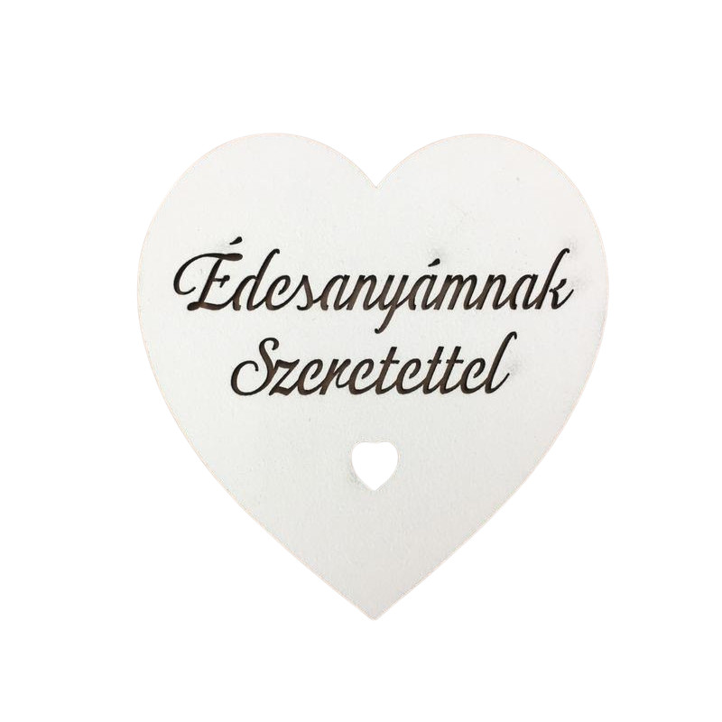 Fa - "Édesanyámnak Szeretettel" szív fehér 10cm