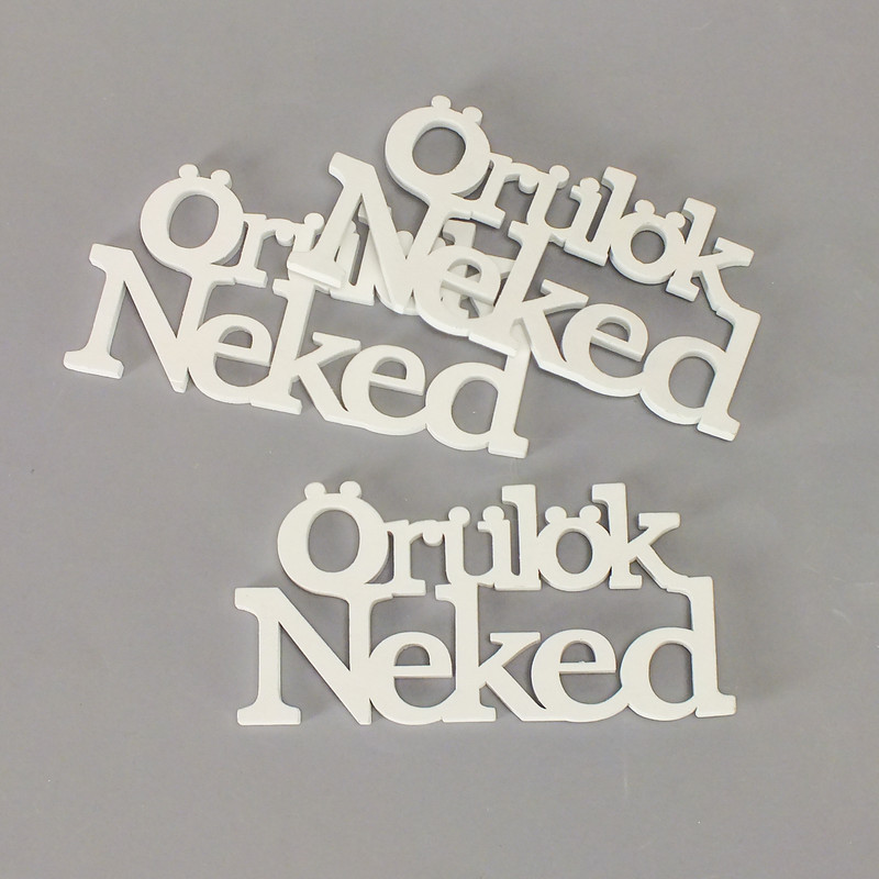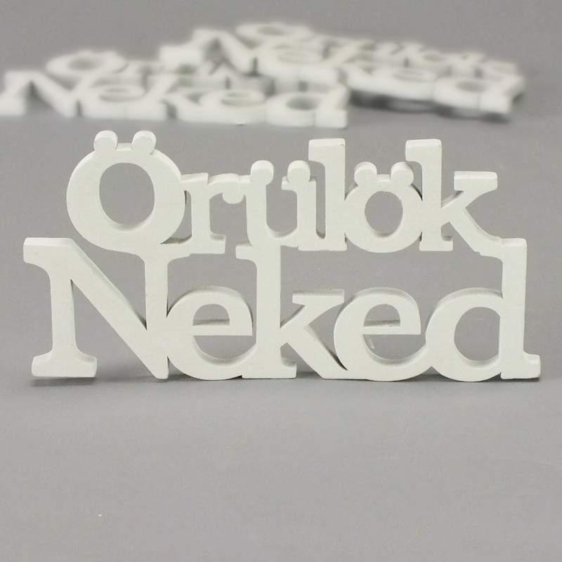 Fa "Örülök Neked" felirat koszorúra fehér 7x14cm 3db/csomag