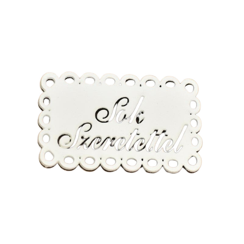 Fa - "Sok Szeretettel" csipkés tábla fehér