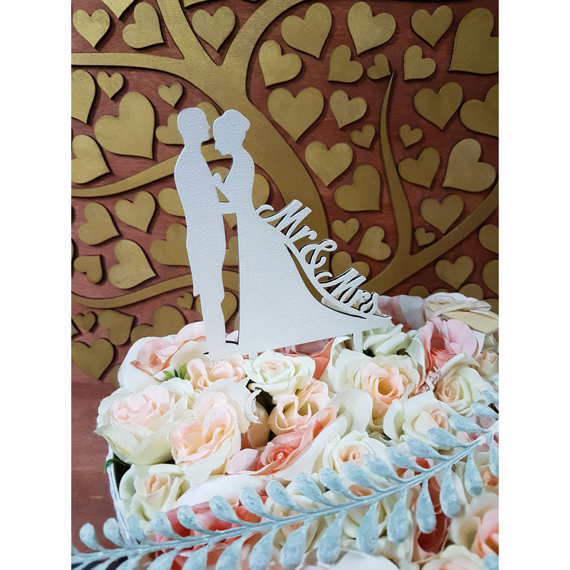 Fa - Tortadísz "Mr&Mrs" fehér 17cm