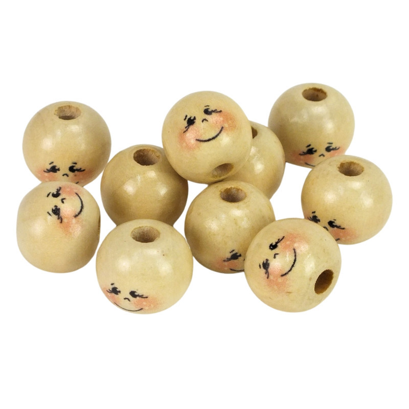 2 cm átmérőjű fagolyók, festett arccal. Akár felfűzéshez, akár bábukhoz vagy egyszerű díszítésekhez.