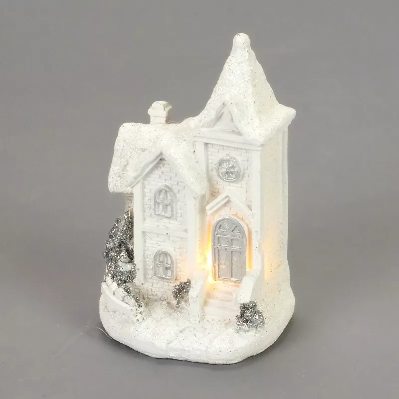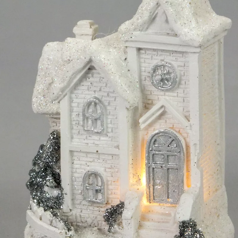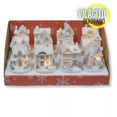 Fehér-ezüst világítós házikó kicsi 12db - OKOS ÁR!