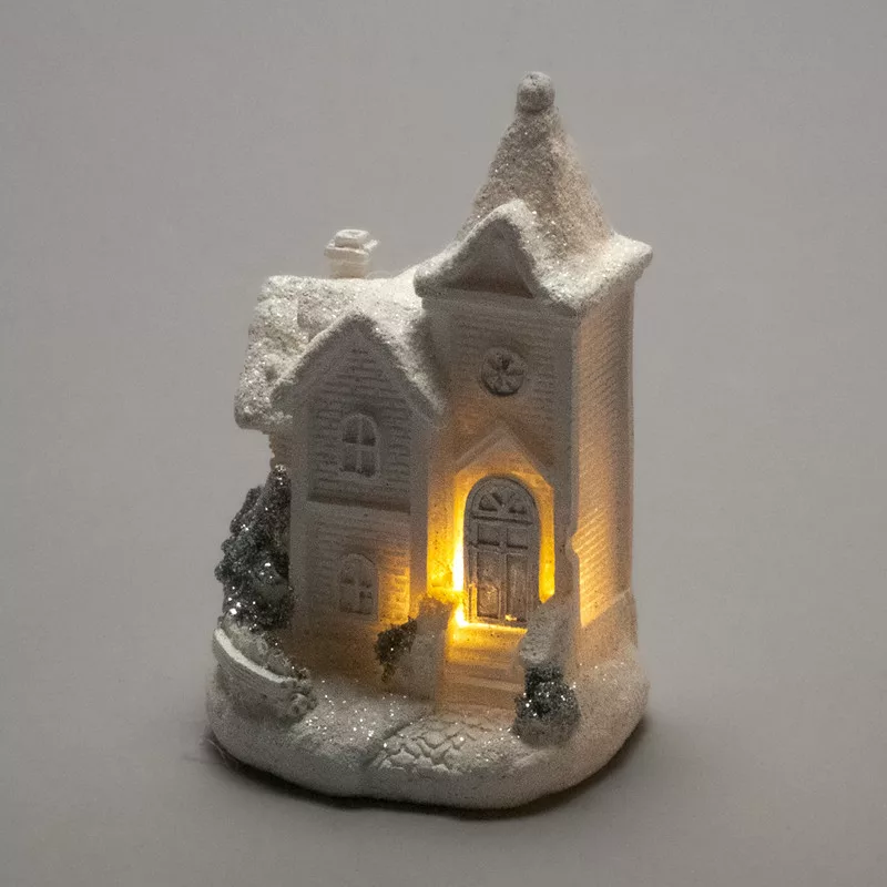 Fehér-ezüst világítós templom kicsi 12db/dob - OKOS ÁR!