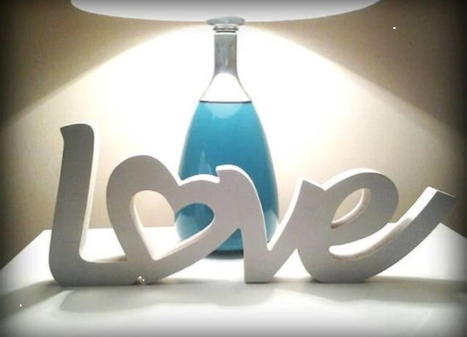 Fehér fa Love felirat  Méretek: 1,5 x 12 x 30 cm.