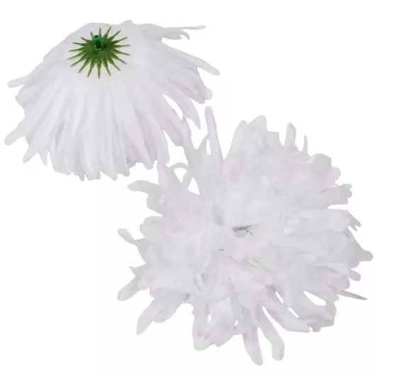 A fehér műkrizantémfej, 15 cm átmérőjű, impozáns díszvirág, ideális nagy virágdíszekhez, rendezvénydekorációkhoz és hatásos vizuális kompozíciókhoz. Nagy mérete lehetővé teszi, hogy központi elemként használja esküvőkön, keresztelőkön, kirakatdíszítéseken és különleges események dekorációján.