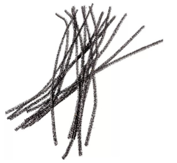 Fekete zsenília plüss drót csillámmal, ideális kifinomult dekorációkhoz, erős kontrasztokhoz és kreatív, vizuális hatású projektekhez. A fényes felület elegáns és modern hatást kelt.