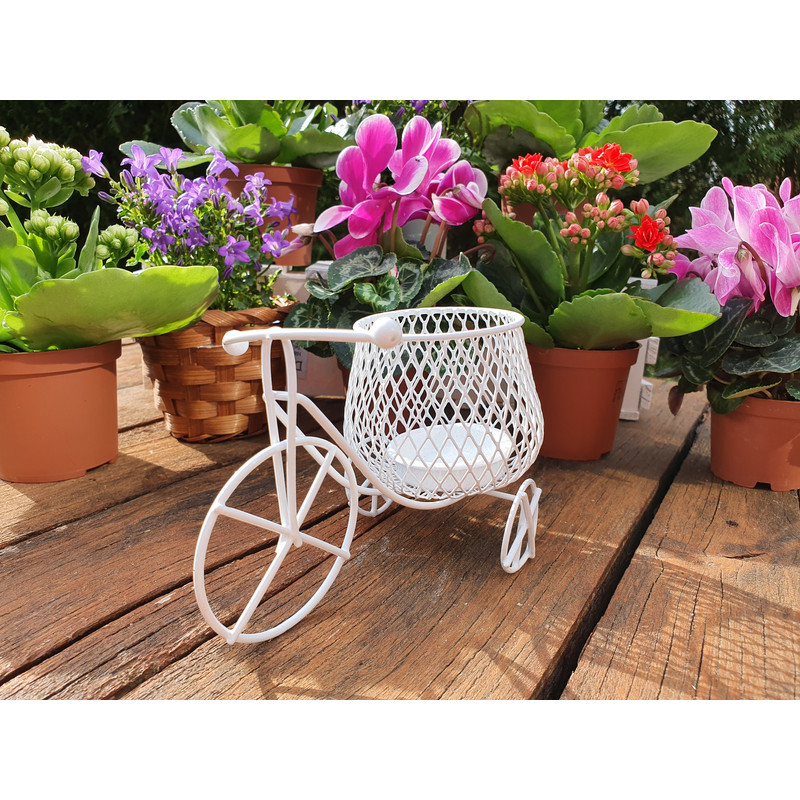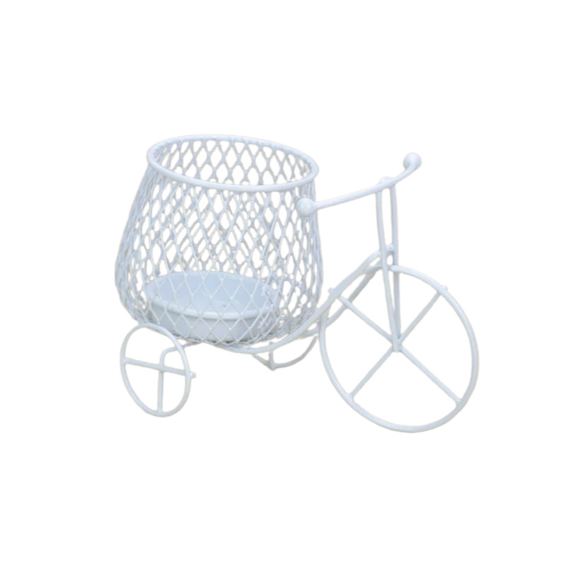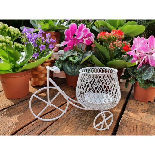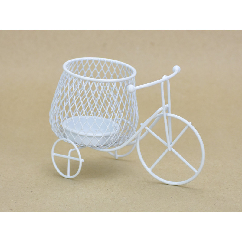 Fémből kialakított bicikli, a tetején fémből készített pohár alakú mécsestartó.