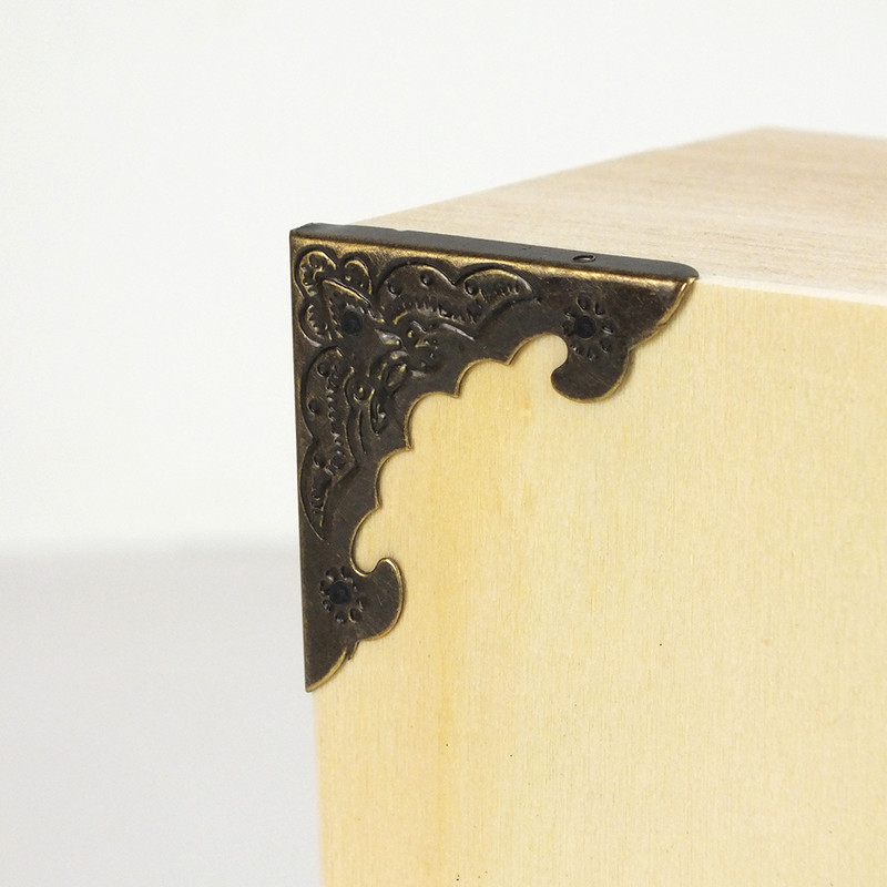 Díszített vékony fém sarokvédő fadobozokhoz, fiókos szekrényekhez, keretekhez és egyéb kreatív alkotásokhoz.