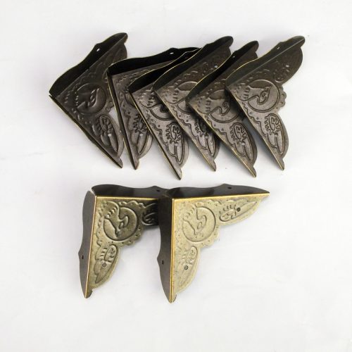 Díszes fém sarokelem, fa dobozokhoz és egyéb alapokhoz.