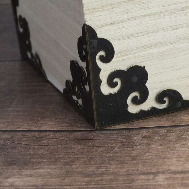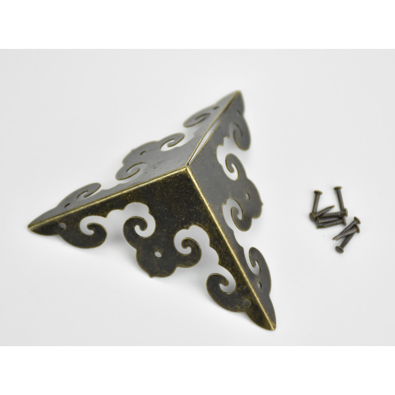 Fém sarokvédő elem fa dobozokhoz és egyéb tárgyak díszítéséhez. Szögek a csomagban.