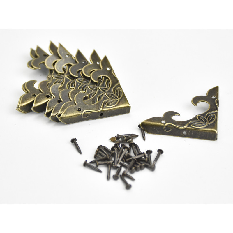 Díszített fém sarokvédő elemfa dobozokhoz és egyéb kreatív alkotásokhoz, képkeretekhez.