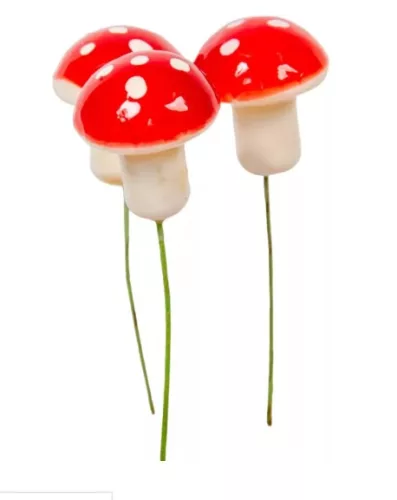 Ez a dróttal rögzített díszgomba vidám és kifejező kiegészítő, ideális virágdíszekhez, koszorúkhoz, őszi dekorációkhoz, kézzel készített projektekhez és tematikus kompozíciókhoz. A klasszikus piros, fehér pöttyös dizájn, amelyet a mesék és a természet világa ihletett, játékos és élénk hangulatot kölcsönöz bármilyen dekorációnak.