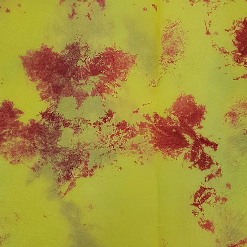 Gyűrt, merített papír sárga-bordó 1ív