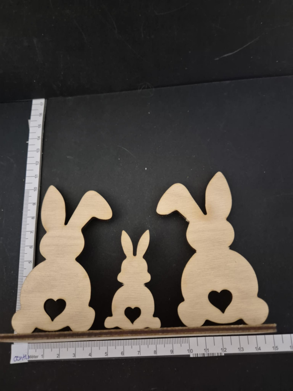 Három fa nyuszifigura (10x15 cm).