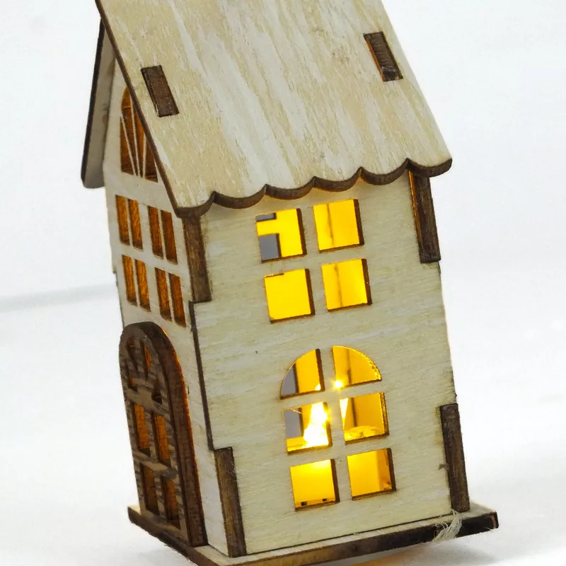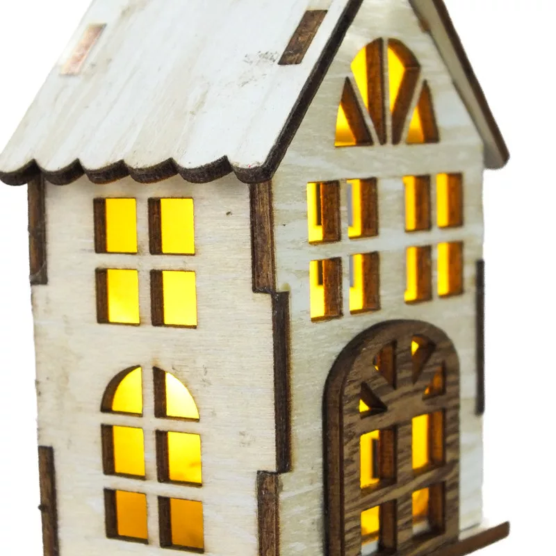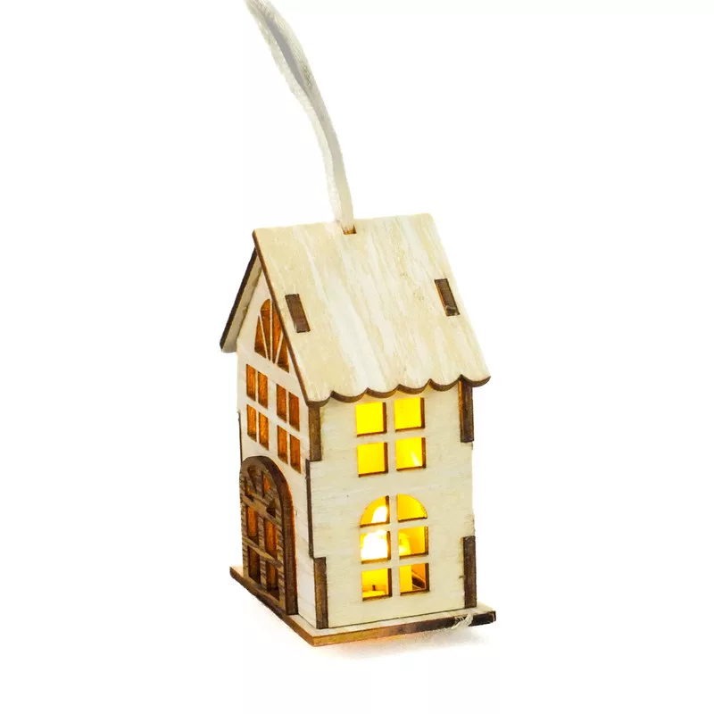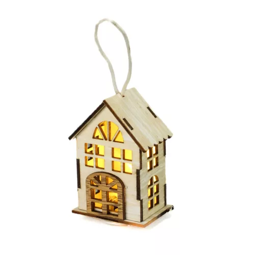 Mini, világítós faház akasztóval, ajtó- és asztaldíszbe vagy karácsonyfára.