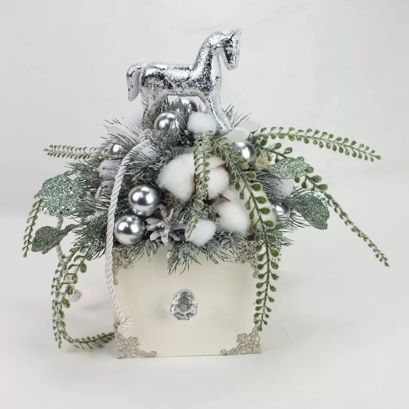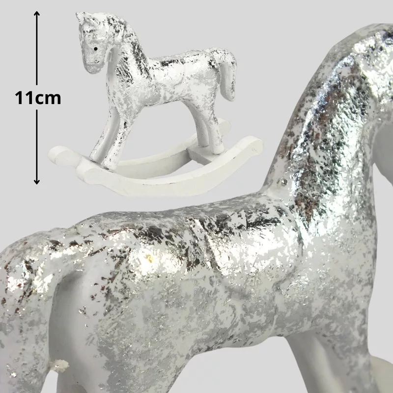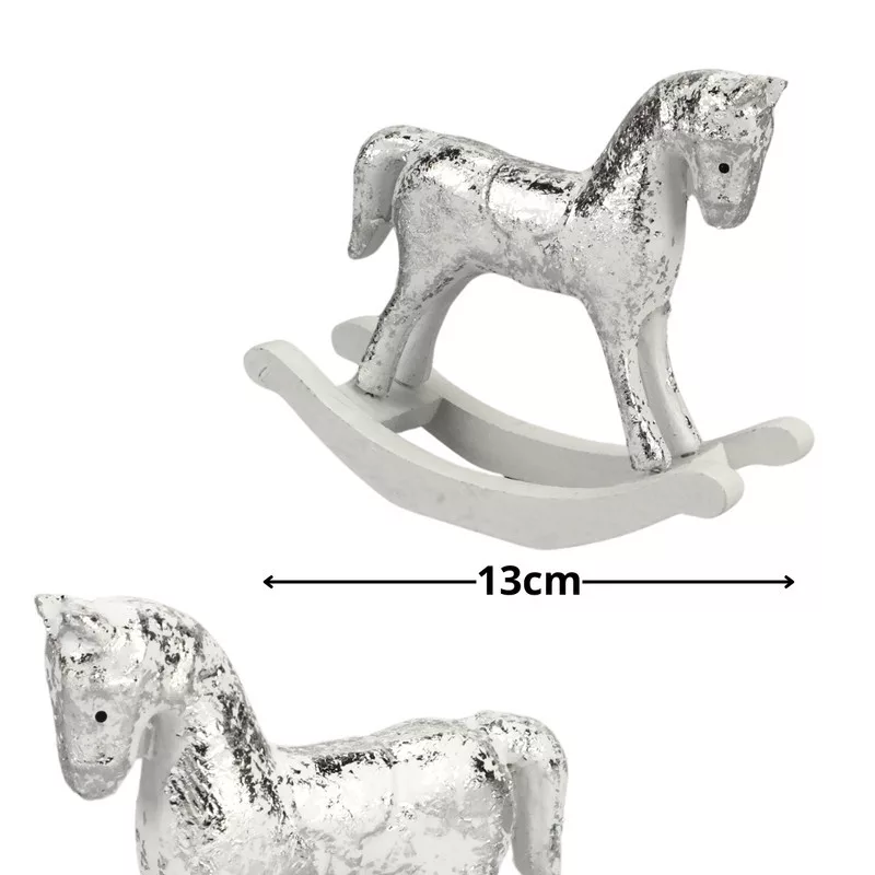 Fából készített díszes hintaló, festett dekor kiegészítő és dekorációs elem.