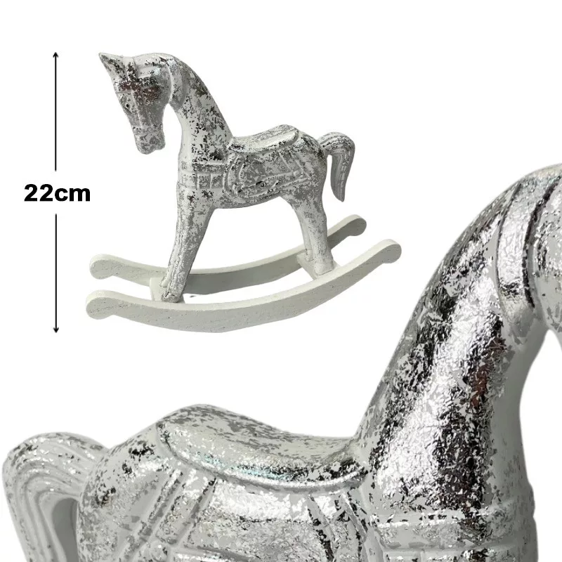 Fából készített díszes hintaló, festett dekor kiegészítő és dekorációs elem.