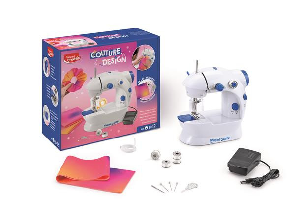 A MAPED CREATIV „Couture Design” készlet lehetőséget kínál a gyerekeknek, hogy biztonságos és kreatív módon fedezzék fel a szabás világát. A mellékelt lábbal működtethető varrógéppel a kicsik elkészíthetik saját hajgumijukat a készletben található anyagok felhasználásával.