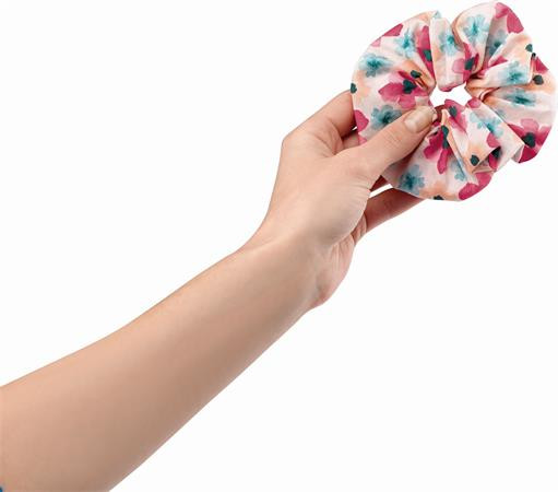A készlet előre vágott anyagokat és egy útmutatót tartalmaz az alapvető varrási lépésekkel, valamint a hajgumi készítéséhez szükséges utasításokat. A videós oktatóanyag QR-kódon keresztül érhető el.